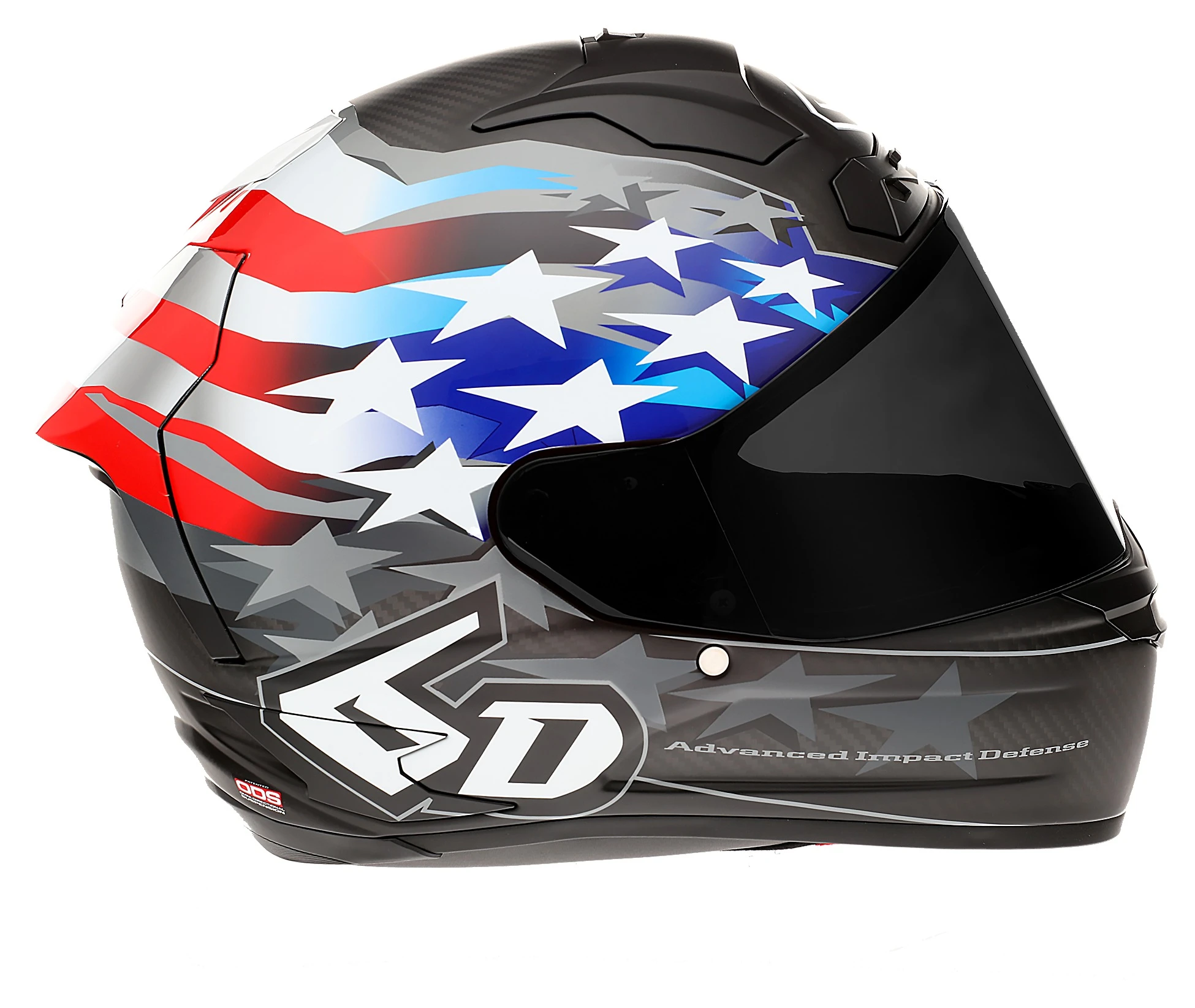 The 6D ATS-1R Helmet is a race helmet designed for the modern age. Featuring 6D’s ODS (Omni-Directional Suspension) energy management system, the helmet is able to provide increased protection from rotational as well as low and high energy impacts. As a floating liner between the comfort and EPS liner, the ODS features an air-gap to allow for improved ventilation and nine total vents move air through the helmet. The shell of the ATS-1R is 100% carbon fiber and combined with the ODS, provides a protection to weight ratio heretofore unseen. The ATS-1R comes with a Pinlock-ready faceshield and a lens insert is included in the box.