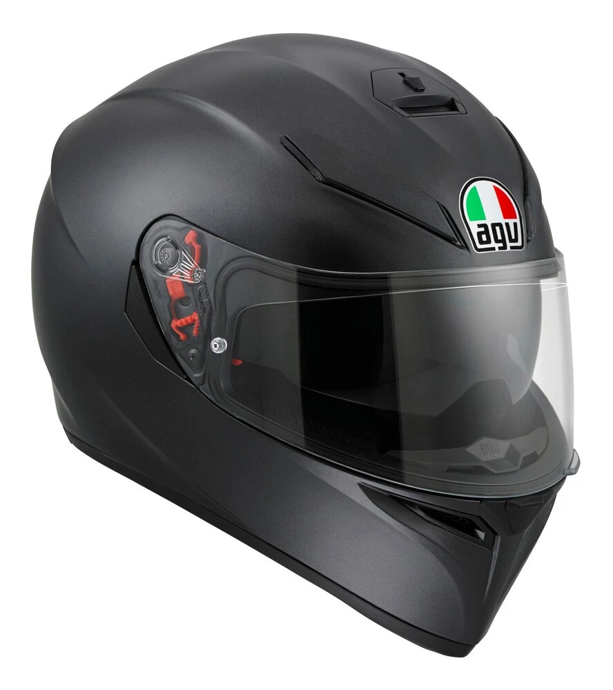 The AGV K3 SV helmet incorporates a drop-down sun visor, making the helmet a tour de force, aggressive street or touring helmet. The K3 is also communication-ready and features speaker pocket cut outs to minimize discomfort caused by Bluetooth speakers pressing into your ears. The AGV K-3 SV Helmet is an excellent choice for any rider who values sophisticated, modern design in a safe and feature-rich package.