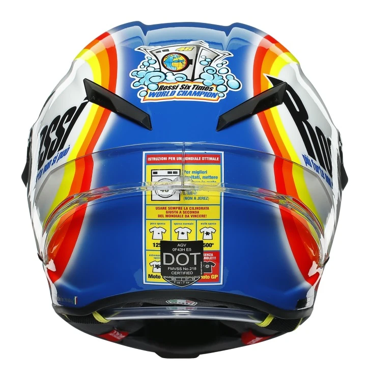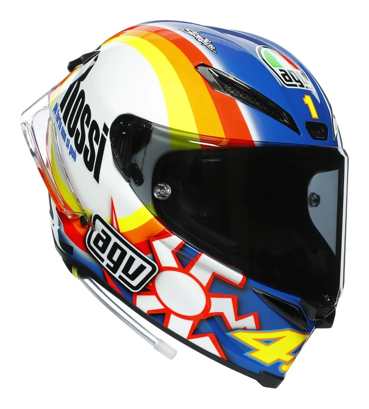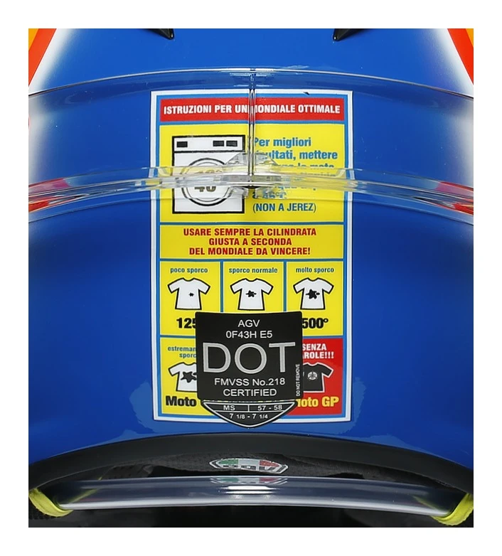 Only 2,005 units of the Winter Test 2005 Helmet will be produced. Helmet number 46 will go to Rossi for his private collection. This savage helmet meets stringent FIM Racing homologation standards and provides the highest level of protection, even against glancing impacts that can cause rotational motion. Carbon fiber molded into an innovative shape lets the helmet move through air effortlessly. AGV’s Integrated Ventilation System (IVS) uses 5 large front metal air vents and 2 rear extractors to let air pass through the helmet freely. Four shell sizes used across 7 different helmet sizes get a closer fitting shell compared to other helmets. The helmet was designed for an aggressive tucked racing position with a face shield allowing for a maximum vertical view and wide horizontal view. AGV’s patented Visor Lock System (VLS) decreases the chance that the face shield comes opens in a crash. With a fit developed for MotoGP racers, the Pista GP RR’s lining allows for an optimized fit and positioning on your head. Everything about the AGV Pista GP RR Helmet is designed for high speed track performance.