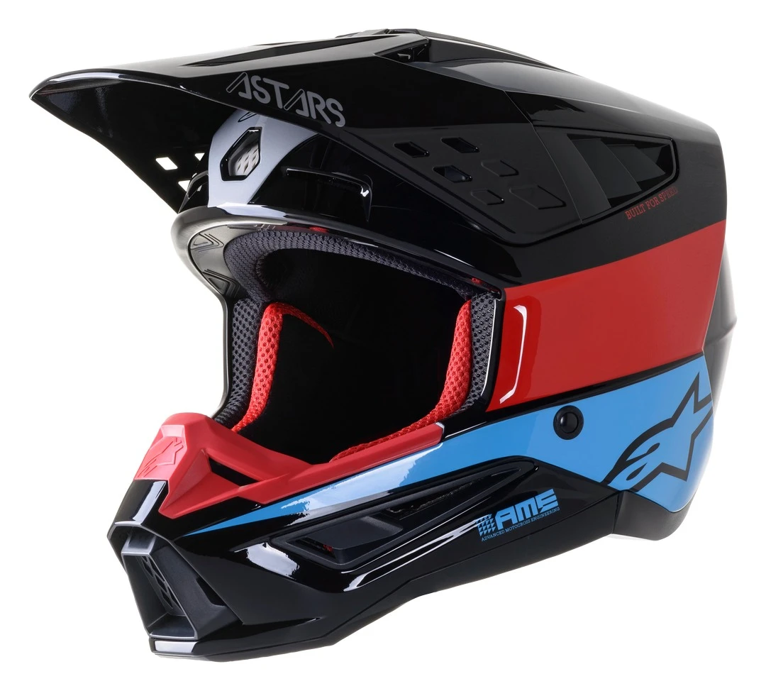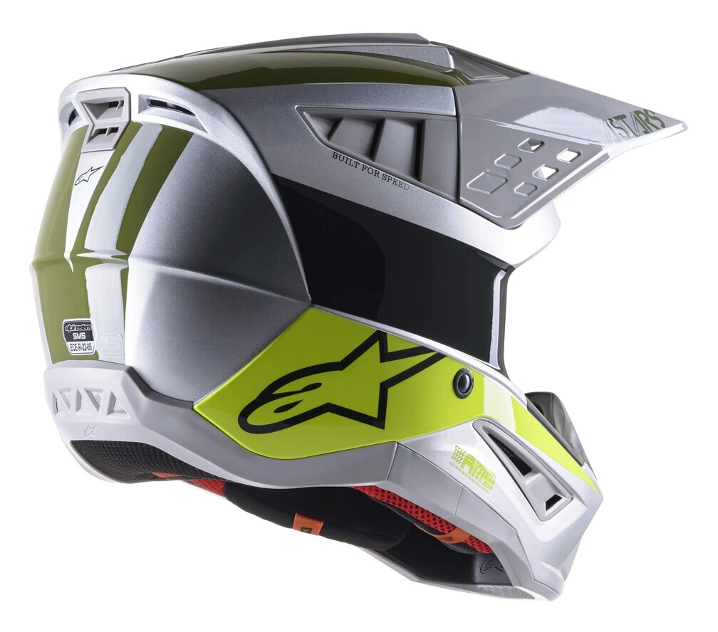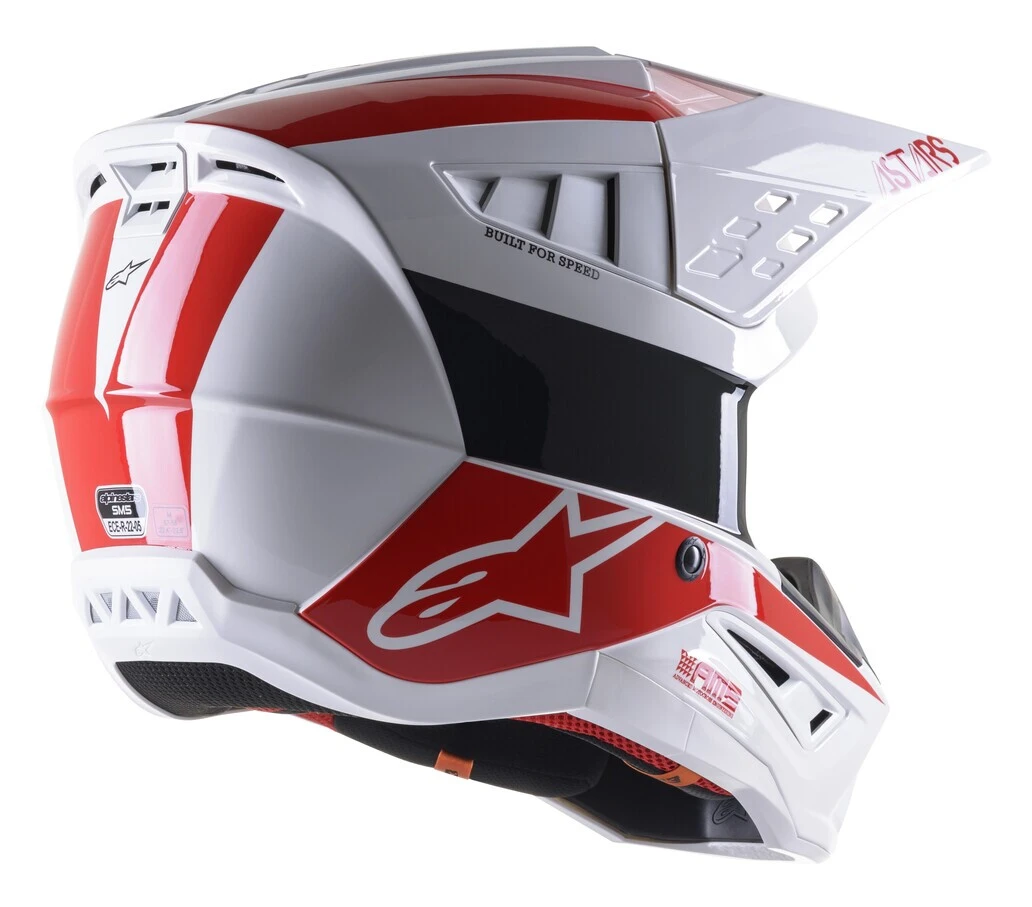 The SM5 Helmet is the result of more than five years of intensive study, development and testing. Alpinestars scrutinized every possible aspect to engineer a helmet that is safe and thoughtfully designed to deliver optimal protection and comfort. This lightweight helmet features a thermo-injected shell incorporating a special polymer blend enhanced by varying degrees of thickness that is engineered to deliver the optimal combination of impact protection and light weight, while the five density EPS liner ensures the correct density in the correct area for enhanced impact absorption. Other key design features include an engineered raised area with padding to effectively reduce the forces transmitted to the collarbone and a patented visor release system that ensures the visor is released with the correct pre-determined amount of force, irrespective of the angle of impact.