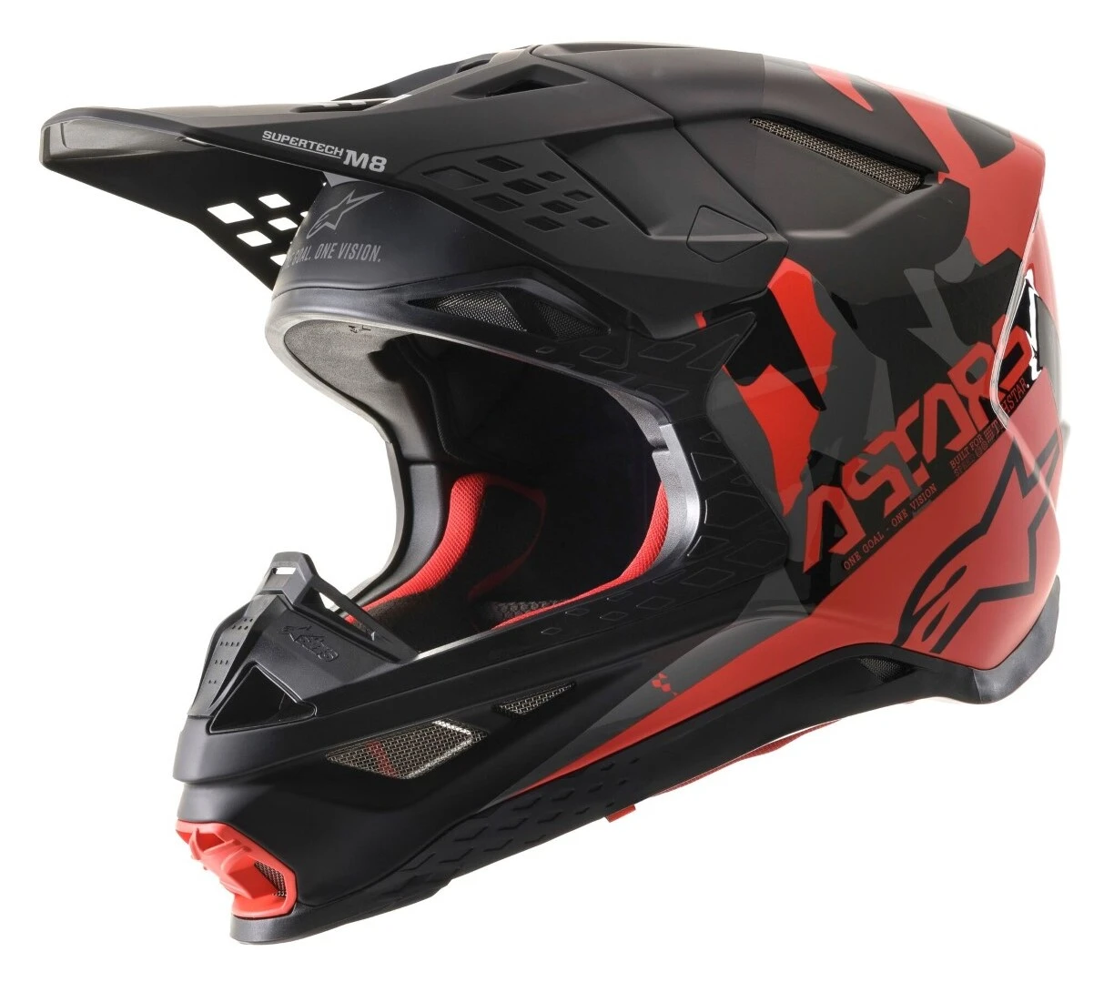 Years of experience designing and manufacturing innovative motorsports technology has given Alpinestars a mastery in outfitting racers, drivers and riders of all types. The Alpinestars Supertech M8 helmet was built from the ground up to be comfortable and protective while still offering high levels of performance for off-road riding and motocross. The Supertech M8 Helmet is constructed of a multi-composite shell and multi-density EPS polymer for for keeping impact energy from reaching your head. Multi-directional Impact Protection System (MIPS) reduces slow glancing rotational impact energy that commonly causes concussions on off-road rides. Emergency release cheek pads along with the “Eject” inflation system allow for emergency removal of the helmet with less stress and movement on the spine.