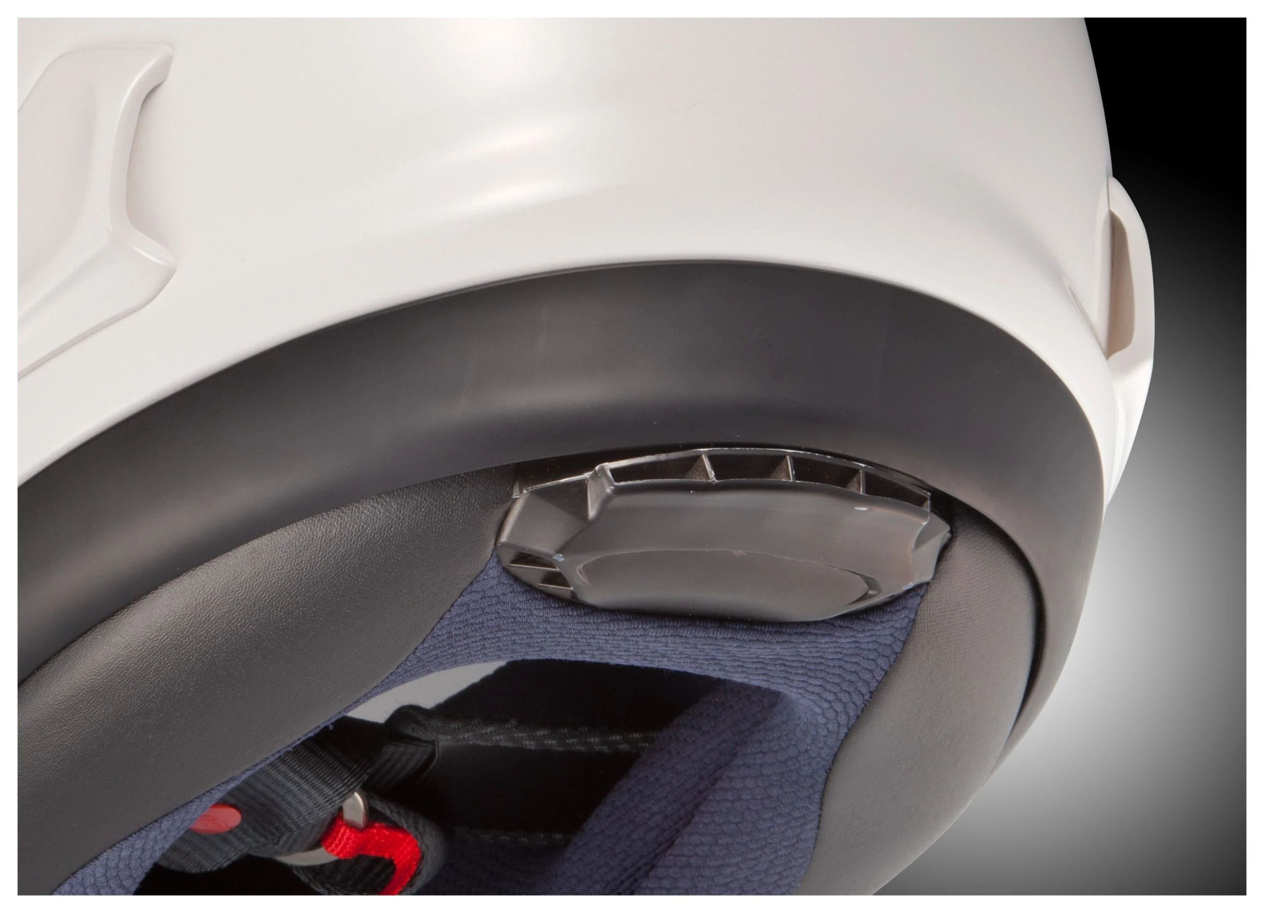 In true Arai fashion, the Corsair-X Helmet has taken helmet technology and rider protection one step further by engineering a helmet that not only guards against direct impacts, but is specifically designed to minimize the effect of “glancing off” impacts as well. Arai has created a stronger shell and smoother shape that is more likely to redirect impact energy than absorb it (therefore decreasing the amount of force transferred to the body). To increase this potential to glance off impact energy, the VAS (Variable Axis System) side pod, pivot cover is smaller in size and its position on the shell is lower.