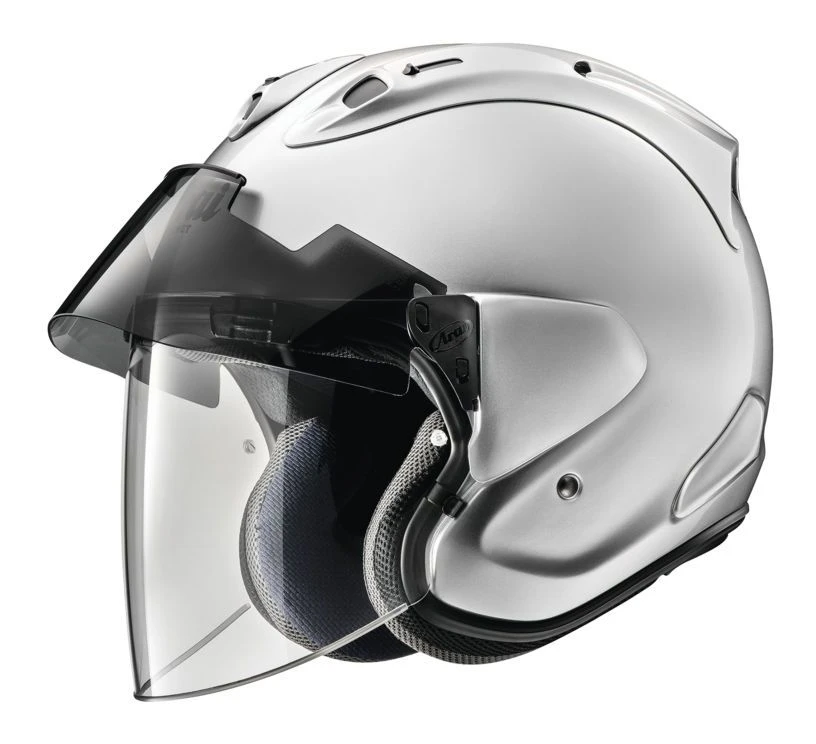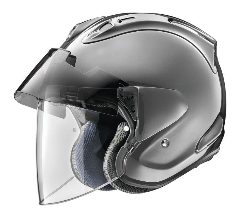 With the Ram-X, Arai takes a leap forward from their previous premium open-face touring helmet, the XC. The Ram-X features the newly designed VAS-Z shield system with a lower pivot point providing smooth actuation and improved safety. In a nod to touring riders, the Ram-X includes a Pro Shade System out of the box which provides the convenience of a drop down sun visor without compromising the shell and thus safety of the helmet. Taking design clues and the ventilation scheme from Arai’s race helmet, the Corsair X, the Ram-X offer best-in-class ventilation for a comfortable ride no matter what.