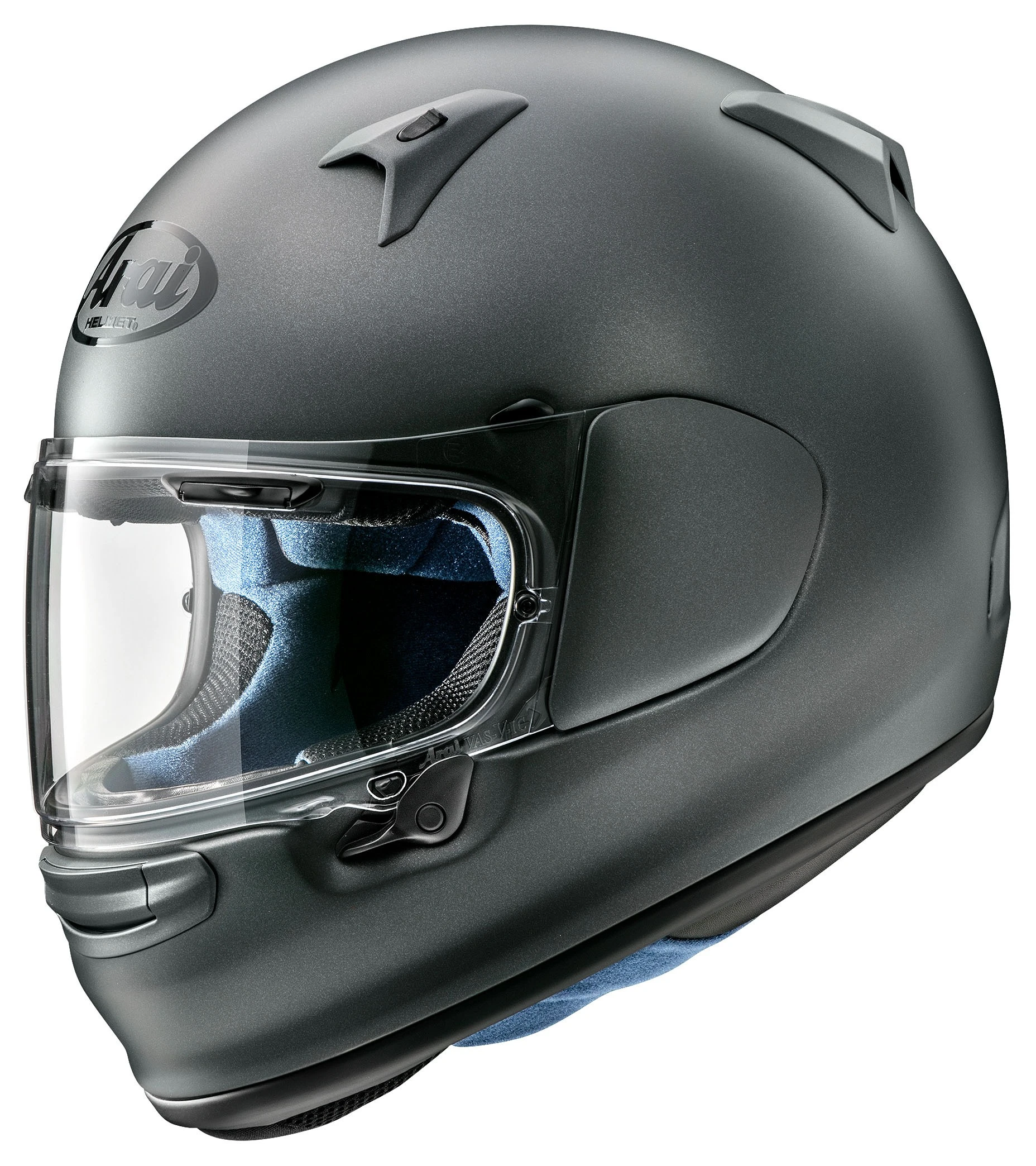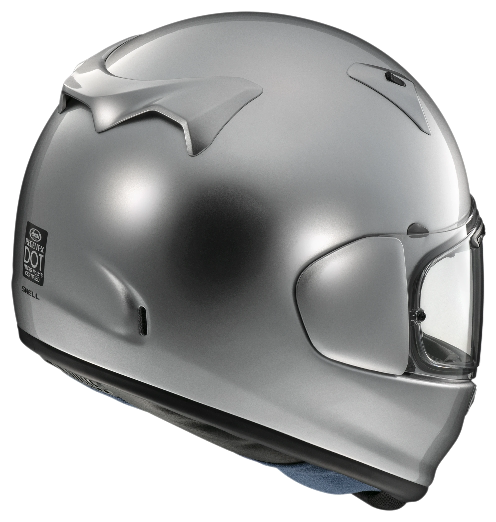 The Arai Regent-X Helmet is a first-rate helmet that welcomes riders to Arai’s exceptional build quality, materials and design. Its redesigned opening makes it easy to put the helmet on or take it off. PB-cLc shell construction is stiff and lightweight to meet Snell certification. With an intermediate oval head shape, the Regent-X fits those with heads that are slightly longer front to back compared to side to side. The multi-density EPS is a single piece that allows Arai to provide protection where it is needed most while still providing a low profile lightweight helmet. The Variable Axis System (VAS) provides a pivot point for the face shield that moves so the face shield can be mounted lower on the helmet while still having enough clearance to open the face shield. The VAS Shield Latch System holds the face shield securely closed or it can be opened slightly to allow venting. The top padding cannot be removed, but cheek pads can be removed for cleaning or replacement. The Arai Regent-X Helmet fine tunes Arai’s features to embrace riders looking for a comfortable, protective and premium helmet.