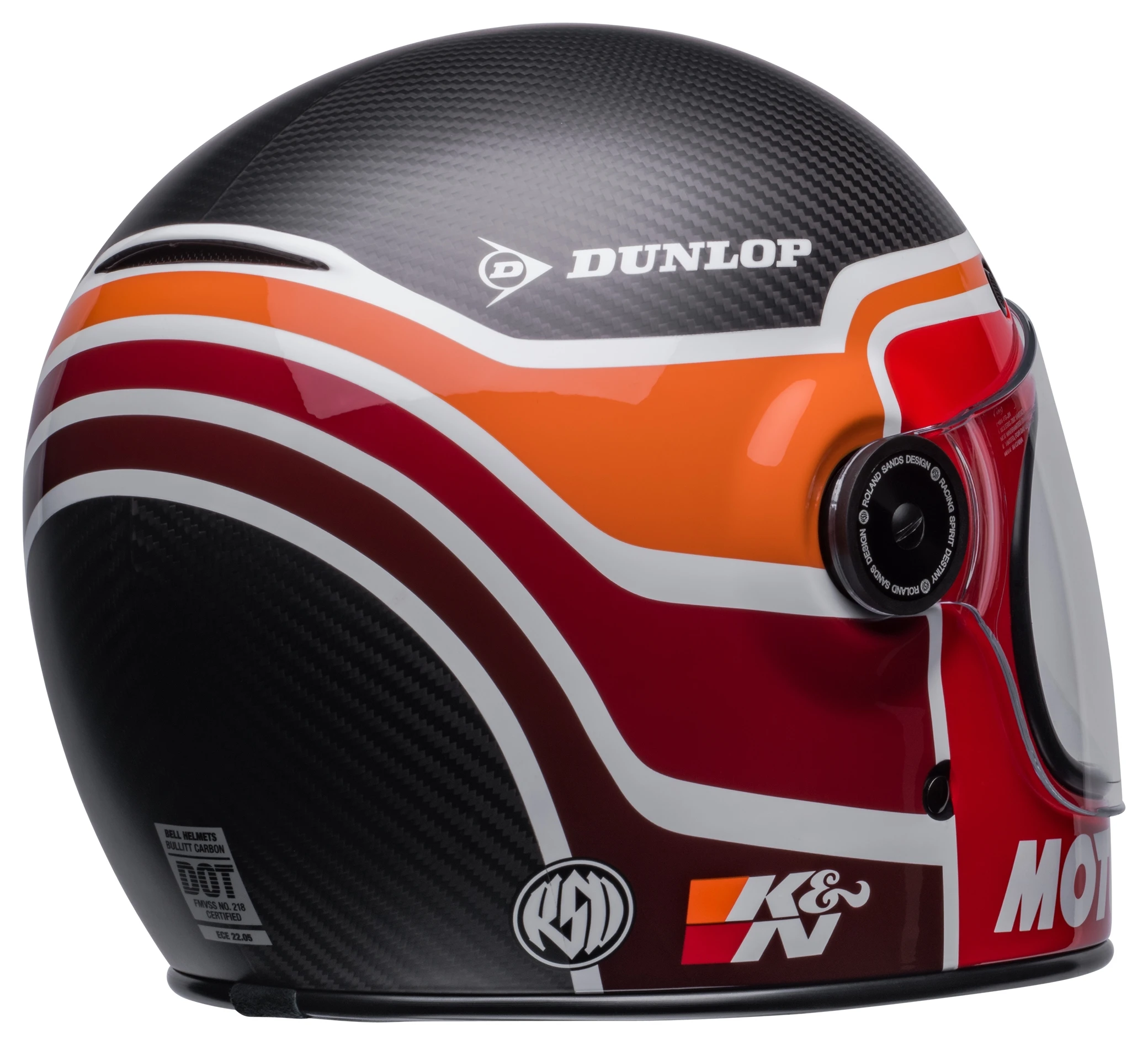 To pay homage to the glory days of motorsport, the Bell Bullitt inherits classic Star styling yet is infused with contemporary comforts and safety. Constructed with a low-profile fiber composite shell and multi-density EPS liner, the Bullitt meets modern DOT regulations yet comes as close as possible to the look and feel of the original Star. Luxurious appointments like micro-suede lining with leather trim, metal mesh circular intake vents with a rear exhaust vent and 3D cut cheek pads with speaker pockets compliment the vintage styling and push the Bullitt into the 21st century.