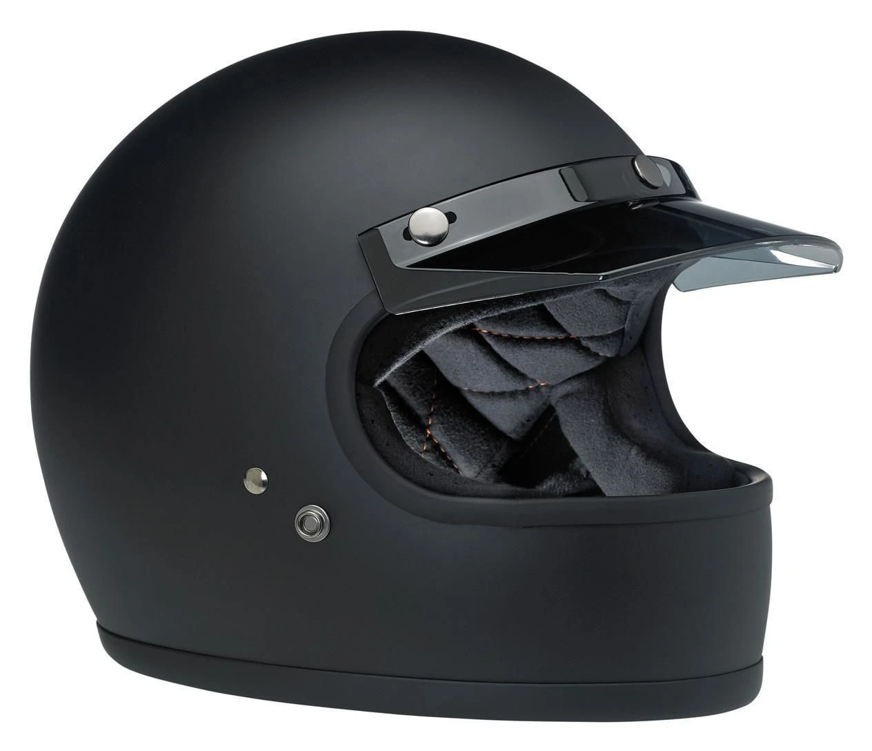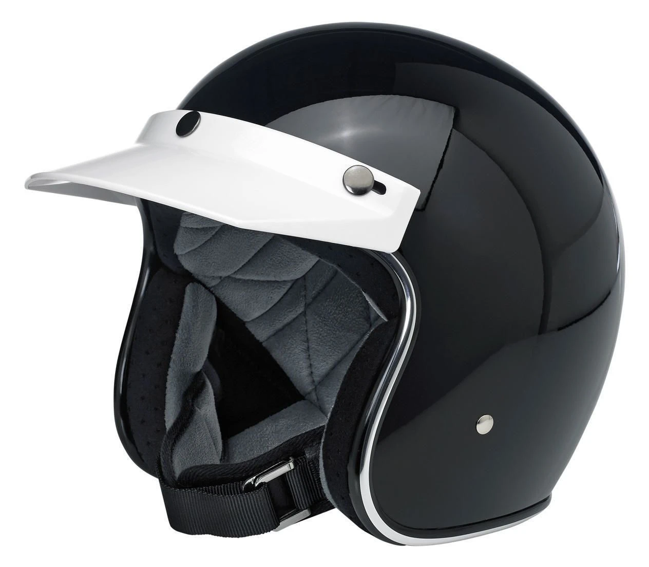 In terms of pure style, nothing says “motocross” like a classic 3-snap visor. Shorter than a duckbill to reduce tugging at high speeds. Tapered sides flow smoothly into the helmet for a look that would make Steve McQueen jealous. Easily snaps on to Biltwell Gringo and Bonanza helmets and most other brands with three snaps on the brow.