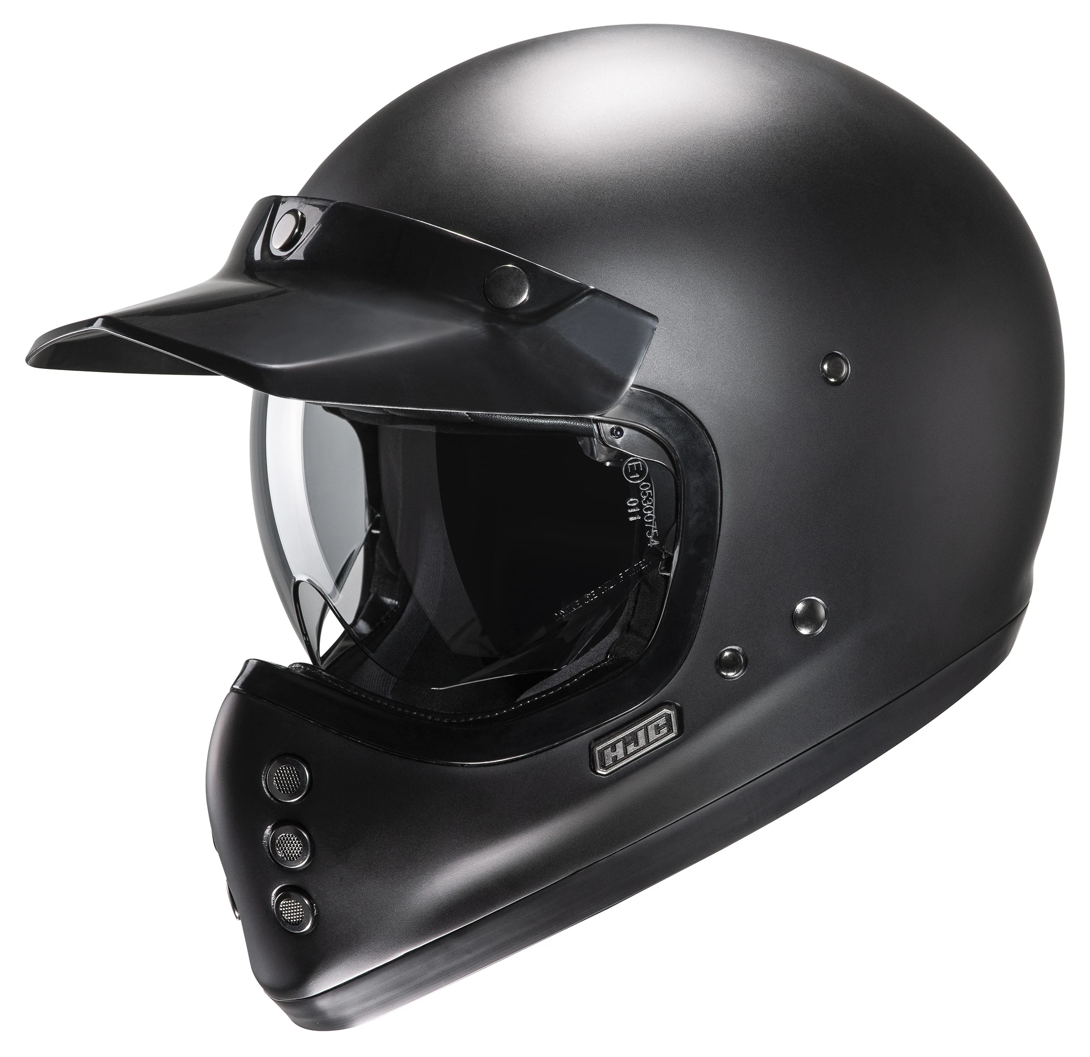 The HJC V60 Helmets are composed of an advanced fiberglass shell with a classic helmet design. This goggle and eyeglass friendly helmet also has an internal sun visor to protect riders eyes. A removable and washable crown and cheek pads allow riders to keep the interior of their helmet fresh and clean. Built in speaker pockets allow for the possibility of adding a communication device. Removable peak visor included.