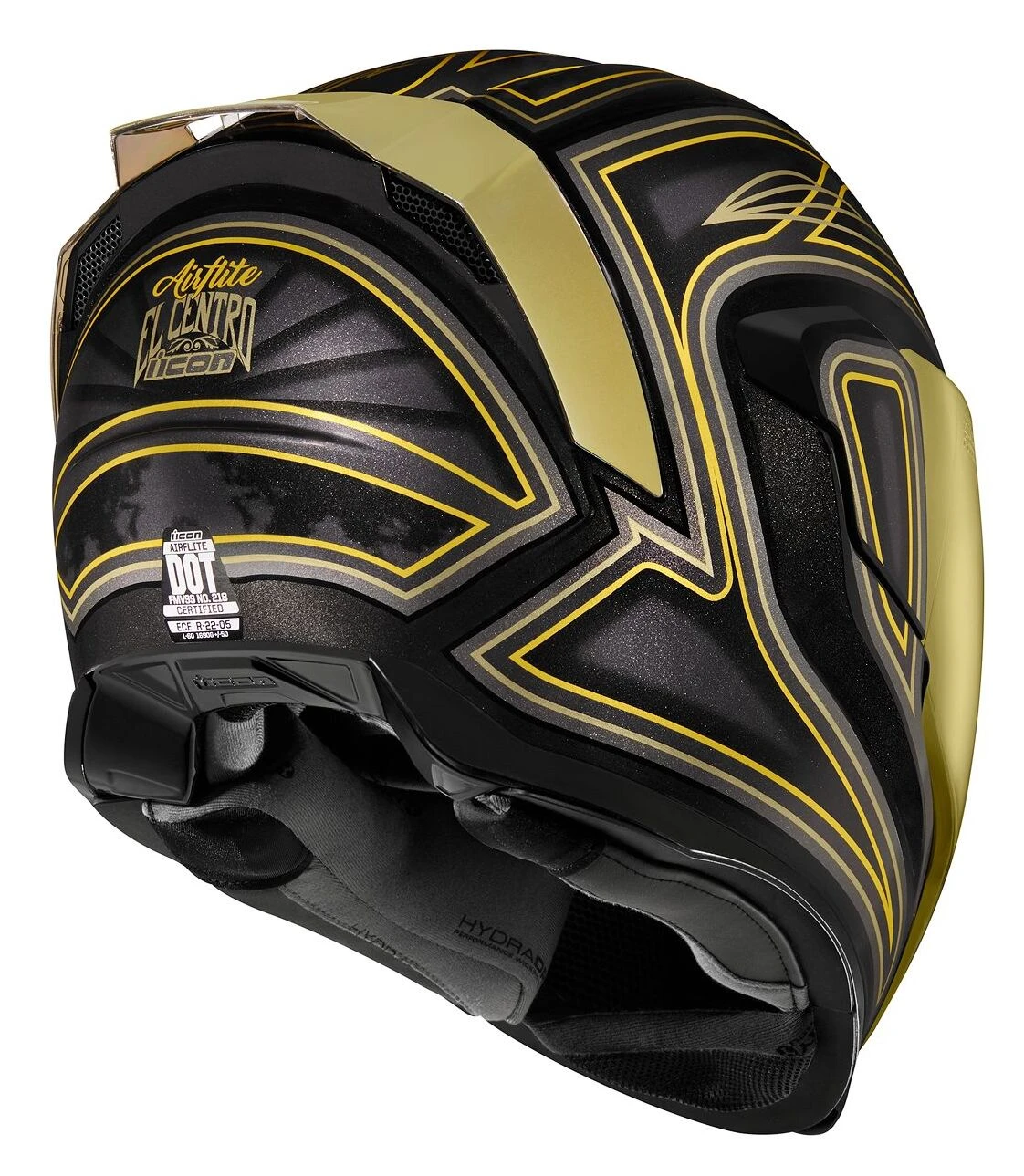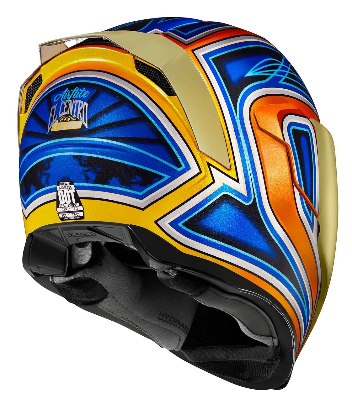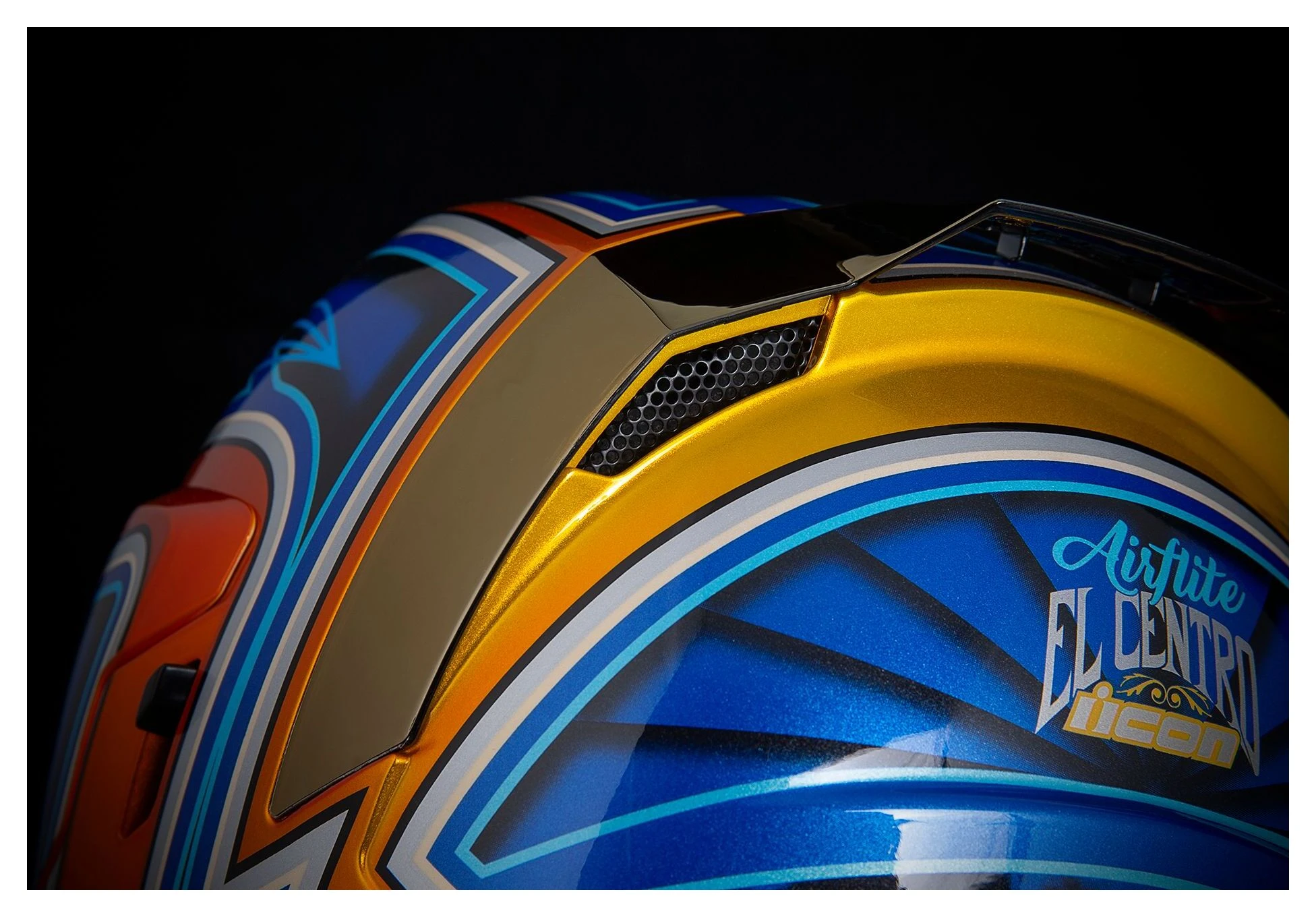 The El Centro Version of the Airflite Helmet ships with a clear and RST gold Airflite face shield included. The El Centro also includes installed RST gold rear side spoilers. Photos simply don’t do the paint justice. Both El Centro colorways pack a pretty heavy punch of pearl sparkle in their paint.