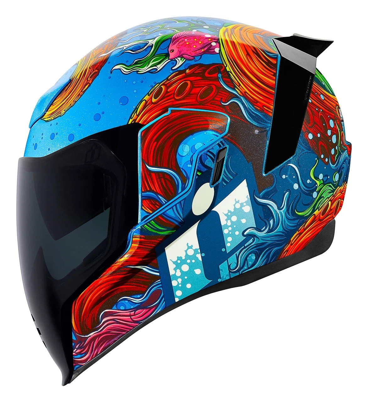 During the spring of 2016, under the cloak of darkness, a wanderlusting octopus named Inky managed a Houdini-level escape from his tank inside the National Aquarium of New Zealand. Using his incredible intellect, lack of skeletal structure and all eight of his sucker-clad arms, Inky wriggled his way across the aquarium floor and slipped out to sea through a drainpipe that was two inches shy of a soda can. There is absolutely no evidence, not one drop in fact, that this helmet design was inspired by his slippery tale of adventure. However, that doesn’t stop us from thinking it could be Inky… gliding through the depths where all murky and mysterious creatures lurk.