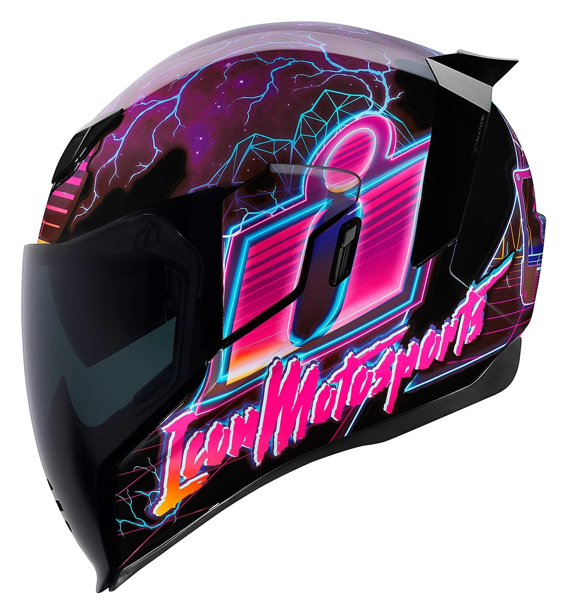 Picture it: you’re in a dark arcade reminiscing about your long lost father when suddenly you find yourself battling for your life atop a glowing light cycle in the grid… and the only thing missing is a sweet, sweet lid. Enter the Airflite Synthwave Helmet in all it’s retro-future glory, a seductive explosion of throbbing electroniand blazing neon, she’s the Lisa to your Wyatt and Garry. So get to work on your most epic mixtape, take it up a notch without blowing your wad, but remember to kick it off with a killer because you’re going to want your first ride in the Synthwave to feel the way a power ballad sounds.