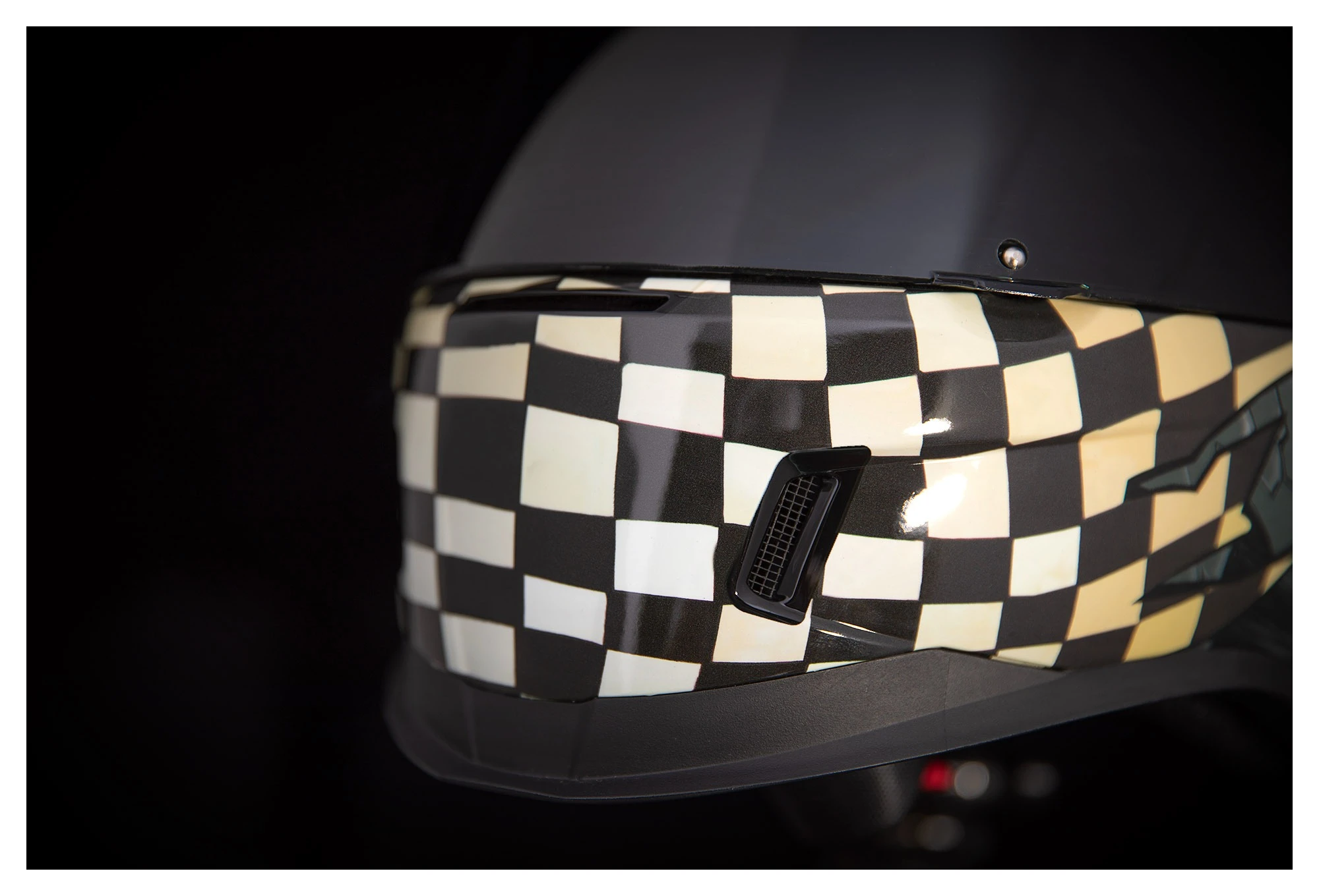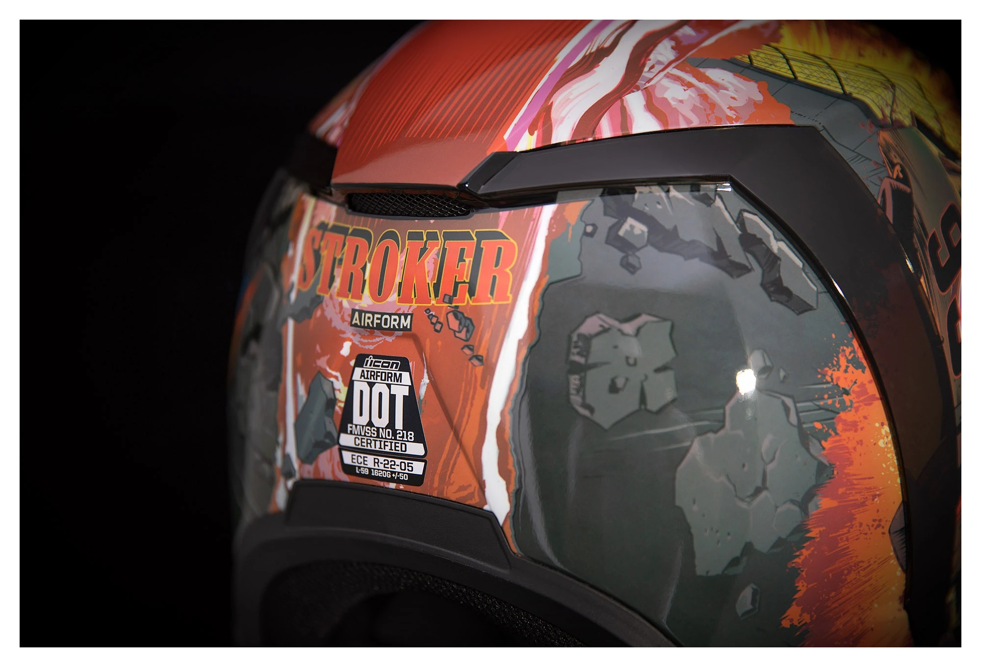 The Icon Airform Helmet is built for riders who need the accouterments of a touring helmet with the performance of a track helmet. Its streamlined and race inspired shell is injection molded polycarbonate for strength. The fog-free Icon Optics Face Shield increases peripheral vision and produces an unmatched distortion-free line of sight so you can keep your eyes on the prize. An internal sun visor drops down to shield your eyes at the flip of a switch.