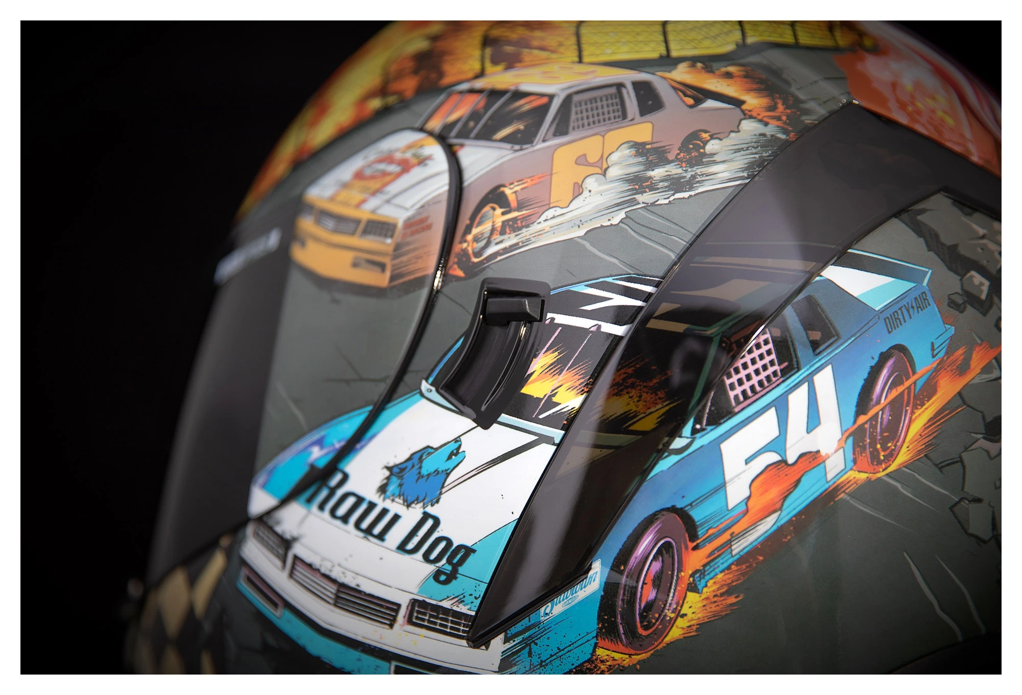 Together with the airflow channels formed in the EPS liner, the Hydradry moisture-wicking interior keeps your head dry on those hot Talladega nights, so stay loose out there and enjoy the fast times. A sculpted neck roll lets you move into and out of the tuck position without as much interference with your jacket, one less thing to distract you while you are riding. Speaker pockets make it easy to install Icon’s R.A.U. Bluetooth Communicator so you can stay connected.