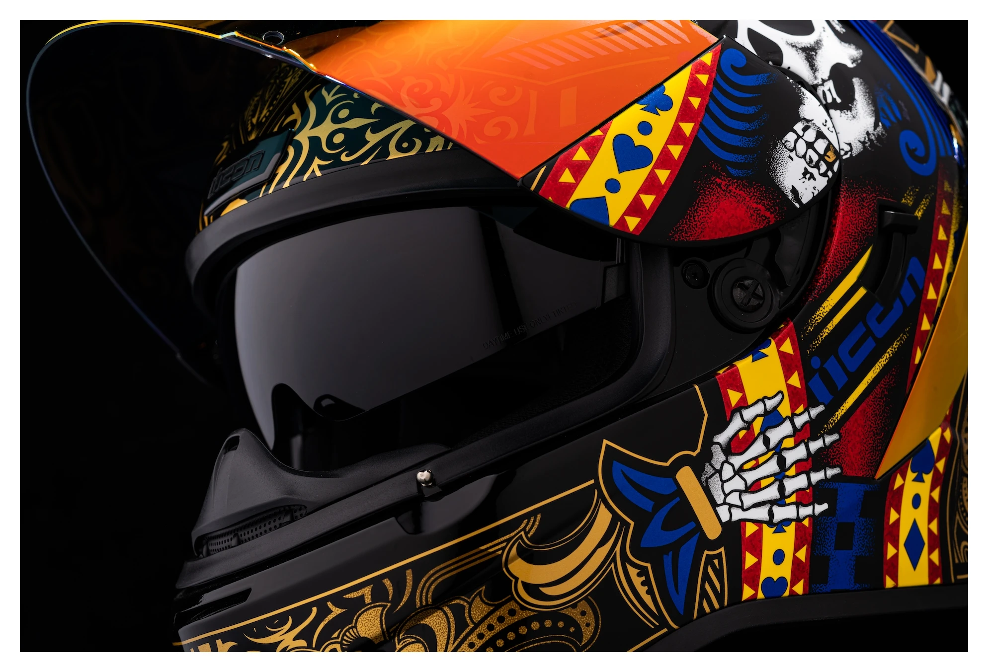 The Icon Airform Helmet is built for riders who need the accouterments of a touring helmet with the performance of a track helmet. Its streamlined and race inspired shell is injection molded polycarbonate for strength. The fog-free Icon Optics Face Shield increases peripheral vision and produces an unmatched distortion-free line of sight so you can keep your eyes on the prize. An internal sun visor drops down to shield your eyes at the flip of a switch.