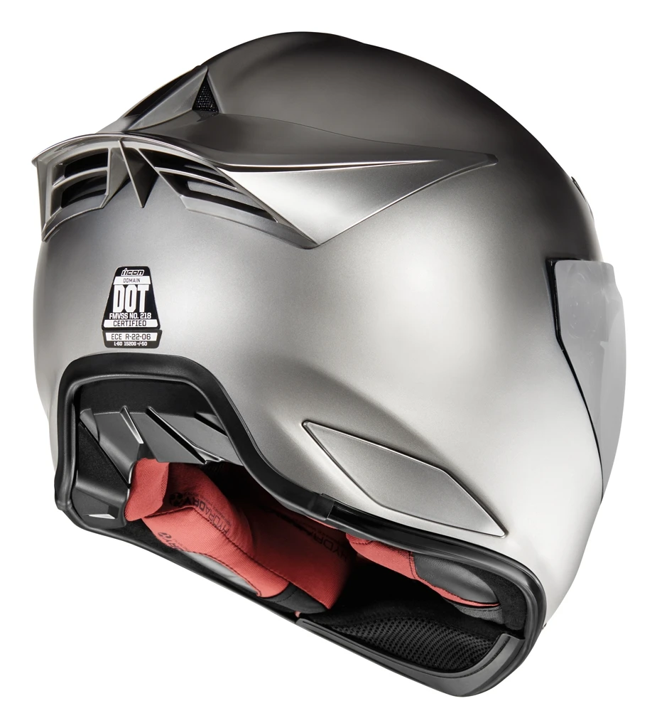The Icon Domain Helmet features a hand-crafted FRP shell for maximum integrity with minimal weight. A prominent dorsal ridge, large brow-mounted intake vents and channeled EPS provide increased ventilation. This increased ventilation greatly enhances rider comfort when paired with the removable Hydradry liner and removable chin curtain. The Domain is also compatible with ICON’s HelmLink Bluetooth communications system, which seamlessly integrates with the helmet (sold separately).