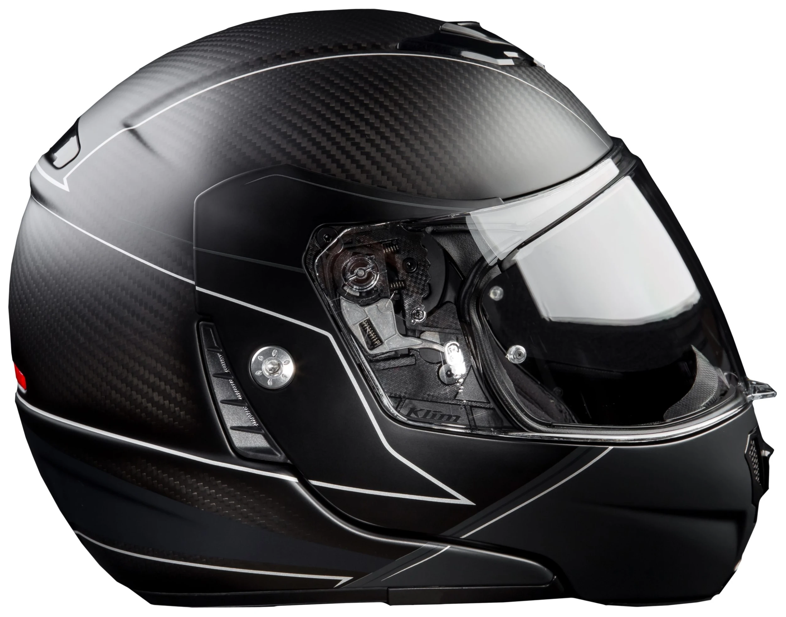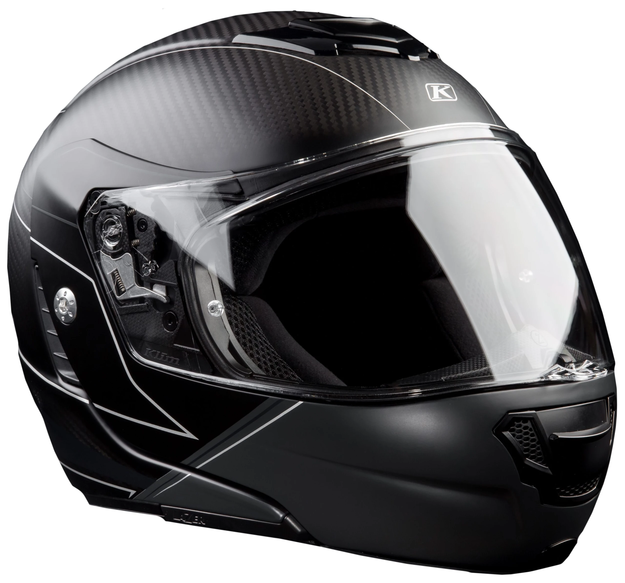 Boasting a full carbon fiber shell in a modular design, the Klim TK1200 Helmet is a technical knockout. The heat-polymerised molded carbon shell affords ample creature comforts while barely tipping the scales. Normally, modular helmets are heavier and louder than comparable full-face helmets. In the pioneering spirit characteristic of the name, Klim has elevated the standard for premium touring comfort and convenience in a lightweight package that will allow you to enjoy a longer, more pleasurable ride. The intelligent ventilation scheme achieves abundant airflow and diminishes heat without compromising the Aero Acoustically engineered environment, realizing heightened rider focus. Equipped with a Transitions face shield and Pinlock lens, the Klim TK1200 Modular Helmet is prepared for all weather conditions, any time of day or night. Whether you are up against sunglare, wind, fog or fatigue, the Klim TK 1200 Helmet has been purposefully designed to eliminate any obstacles that may attempt to hinder your adventure.