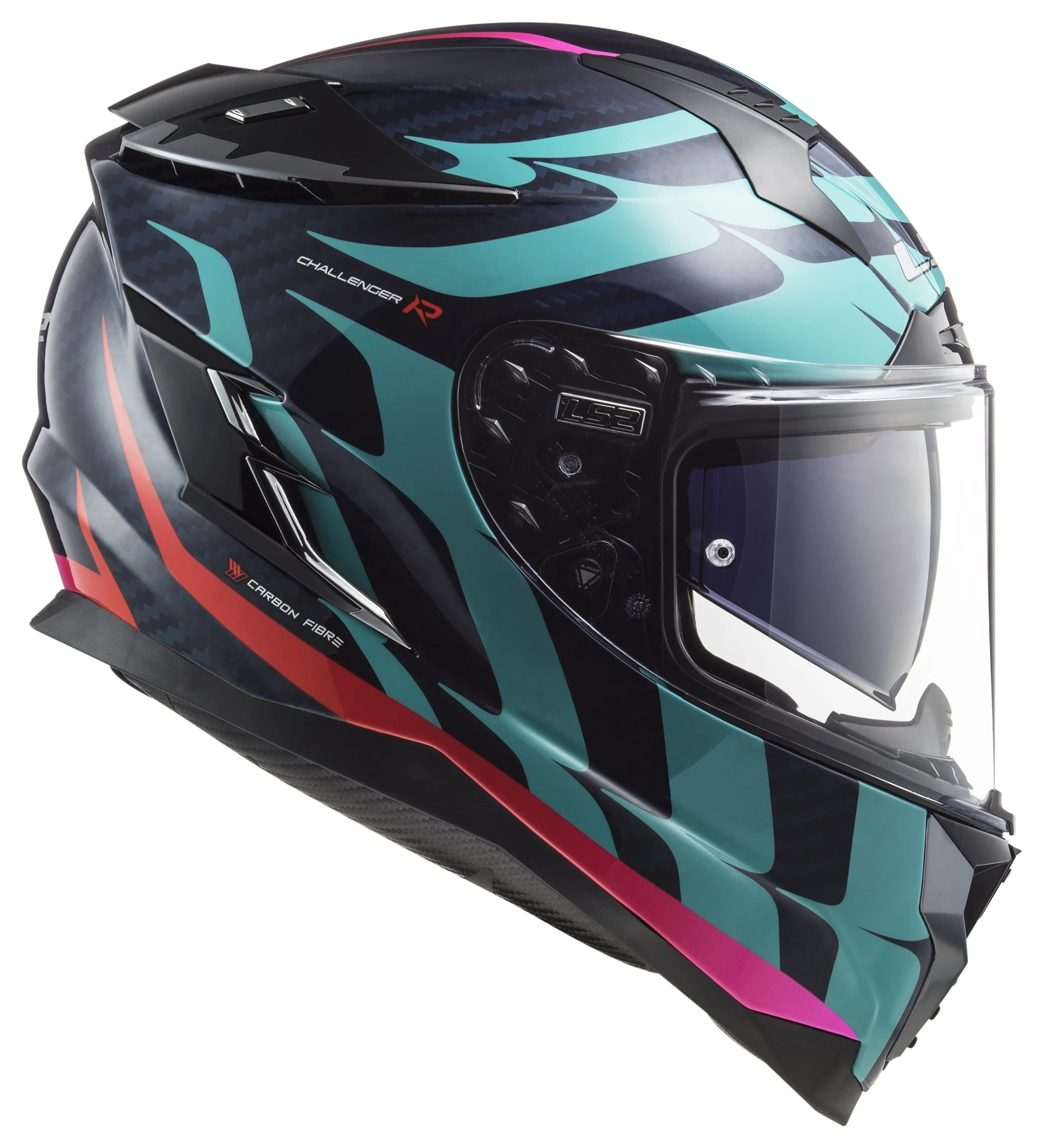 The designers at LS2 combined uniquely developed hand layups with advanced, computer-controlled technology to build the ultimate high-performance shell for the Challenger Carbon Flames Helmet. The shell is made from a blend of carbon fiber, Kevlar and fiberglass to provide more flexibility and offset kinetic energy. The 360 degree multi-density EPS safety liner has been carbon-infused for greater energy absorption and reduces the amount of moisture the liner will absorb for more consistent weight. All vents and gaskets are mounted with a precision fit and strategically placed for maximum airflow. The dual-ported chin vent assists with keeping the shield from fogging while also keeping you cool and comfortable on your ride. The Challenger also utilizes a Pinlock Max face shield to ensure clear vision on the road and a Double-D ring strap for a secure fit. The Challenger Carbon is the ultra-high performance version of the Standard LS2 Challenger Helmet. The Challenger Carbon Flames helmet is a long oval fit and meets or exceeds DOT and ECE certifications.