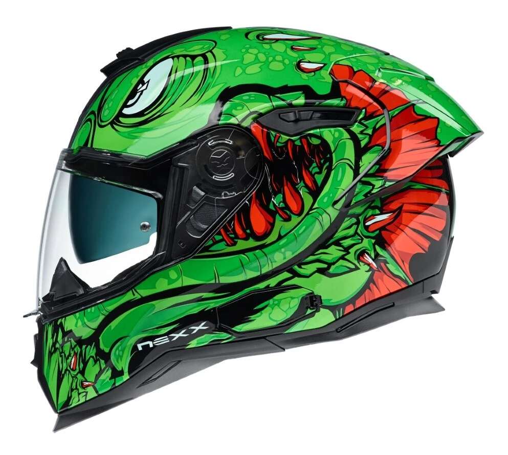 The SX100R is a solid sport and sport touring helmet with a plush interior, high quality shield seal and sizable drop down internal sunvisor. It’s the perfect helmet for the daily commuter or someone hitting the road for an extended trip. It has all of the necessary accoutrements that make up a quiet ride from its premium non-mesh chin curtain and aggressively undercut neck roll to the perimeter seal around the view port; all of these components work in concert to occlude road noise. The drop down internal sun visor is easy to deploy, even with thick winter gloves, and saves you from carrying a spare shield to toggle between sunny morning versus evening commutes.