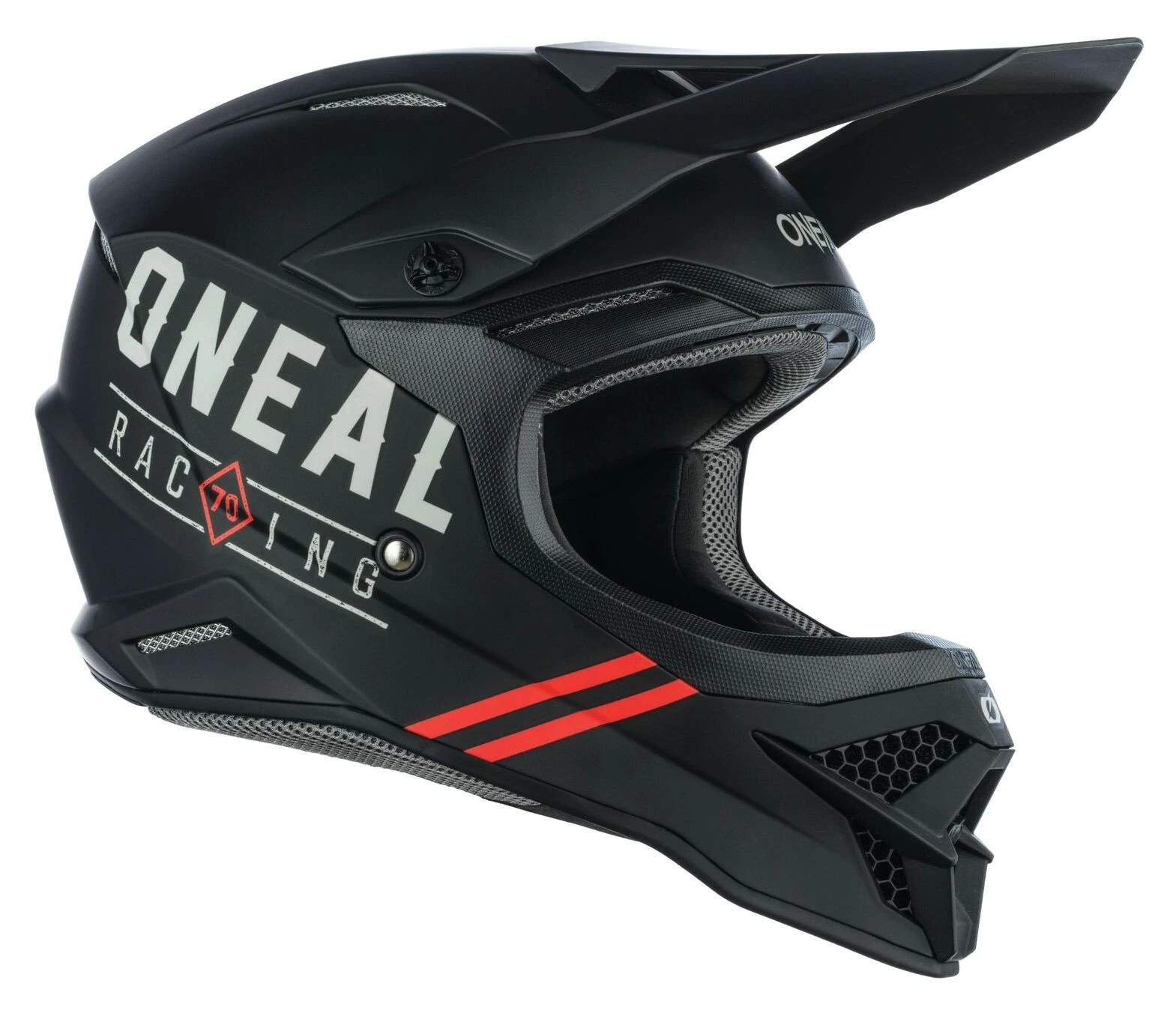 O’Neal uses ABS plastics for a tough but lightweight shell and first line of impact defense. Starting at the oversized air intake at the mouth, the hi-perf vent scheme continues to brow-mounted intake vents and rear exhaust ports. Beneath the aerodynamic shell is a multi-density EPS liner, helping the helmet achieve DOT and ECE certifications. A multi-position visor can be angled to suit your specific riding conditions and sun angle. Durable graphics and a host of replaceable parts will keep the 3 Series Helmet ready ride after ride. Add in the plush, moisture-wicking interior materials which are all removable and washable, and the 3 Series proves itself as a lid that delivers more than its price would imply.