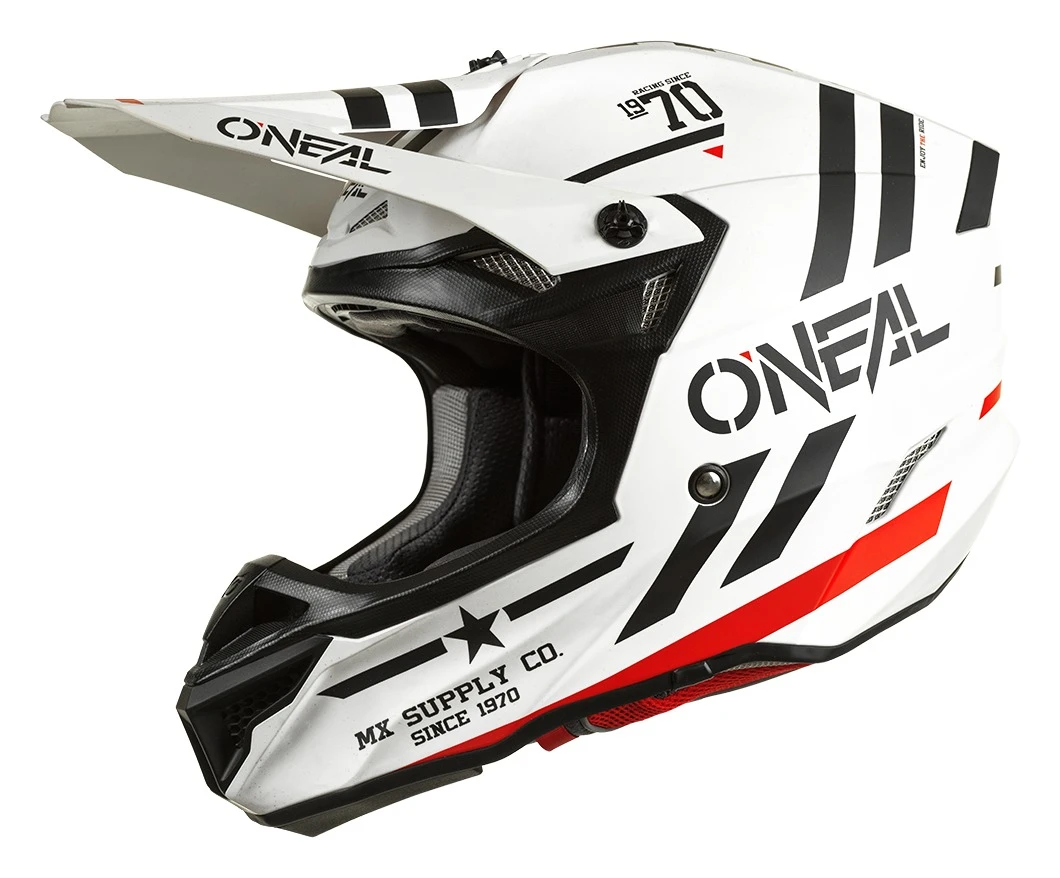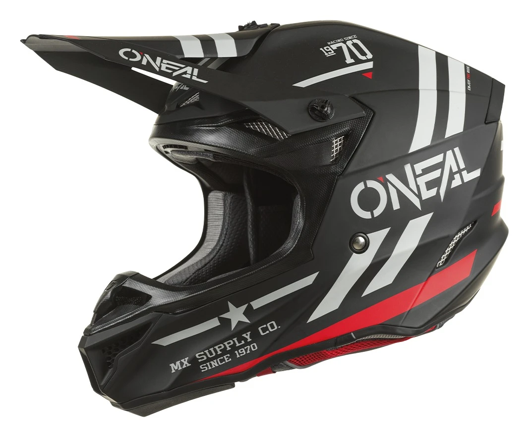 The O’Neal 5 Series Helmet is constructed using a lightweight polycarbonate/ABS shell and includes multiple air vents to help keep you cool and dry during those longer rides or hot summer Motos.
