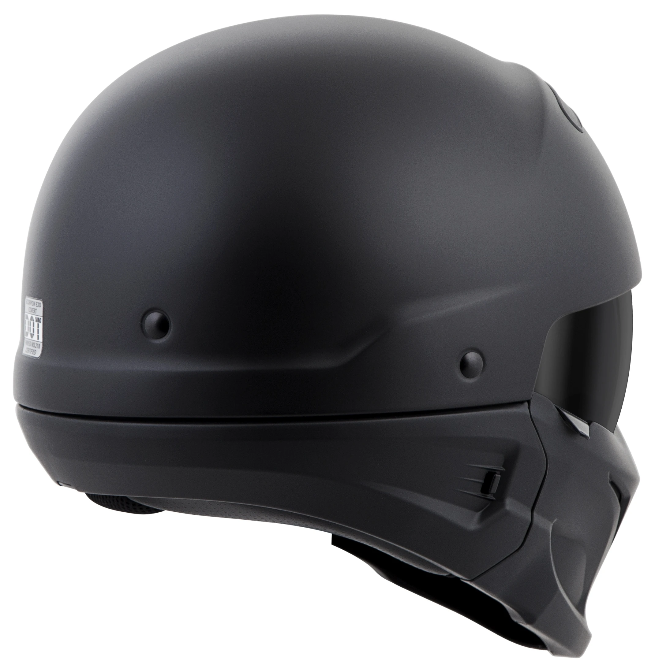 Scorpion adds a whole lot of “but wait, there’s more” to the classic half shell with the Scorpion Covert Helmet. They start off strong with a tune-able ventilation system. Next they mix in a no-frills drop down sun visor system. One pull on a tab lowers the shades then pushing the same tab retracts them; it couldn’t be easier. Snapping in a rear bottom sleeve transforms your lid into a 3/4 helmet and helps to muffle some of the cries from your lives-saving exhaust. Despite the extra coverage, Scorpion’s Kwikwick liner keeps your head in the game by channeling heat and humidity up to the ventilation ducts to be piped out the back. You’ll be cool as a cucumber. But wait, there’s more. Attaching the front mask shields your pretty face from bugs, and you-name-it debris as you’re blasting down the interstate. If you’re one who frequently needs to transition from being seen to only heard, the Scorpion Covert is there for missions ranging from the twisties to the impossible.