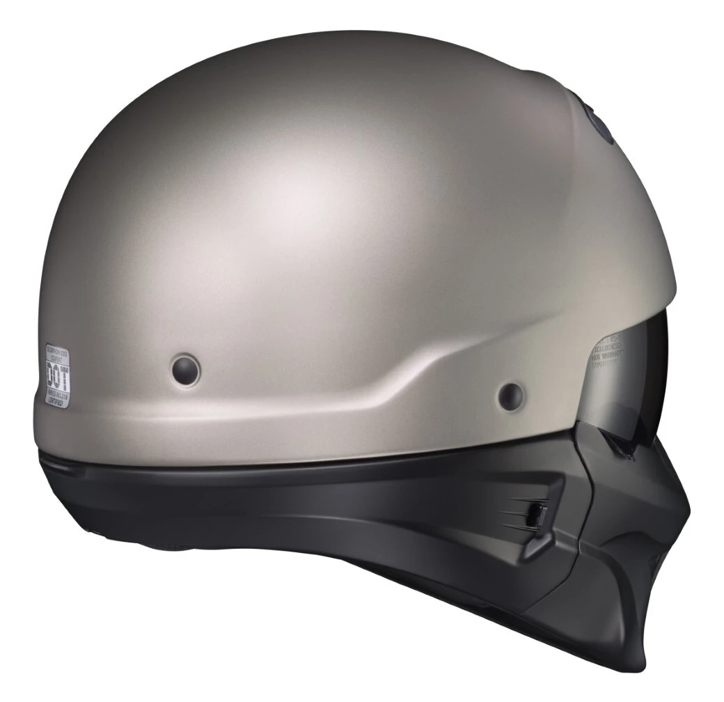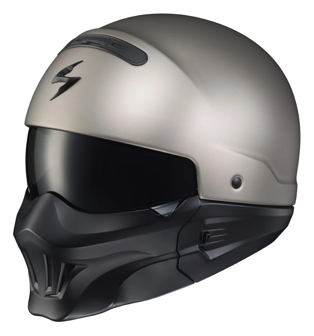 But wait, there’s more. The Covert Titanium Evo edition boasts a unique face mask, different from the other Covert Helmet models in the Scorpion line-up. Attaching this front mask shields your pretty face from bugs, and you-name-it debris as you’re blasting down the interstate. If you’re one who frequently needs to transition from being seen to only heard, the Scorpion Covert is there for missions ranging from the twisties to the impossible.