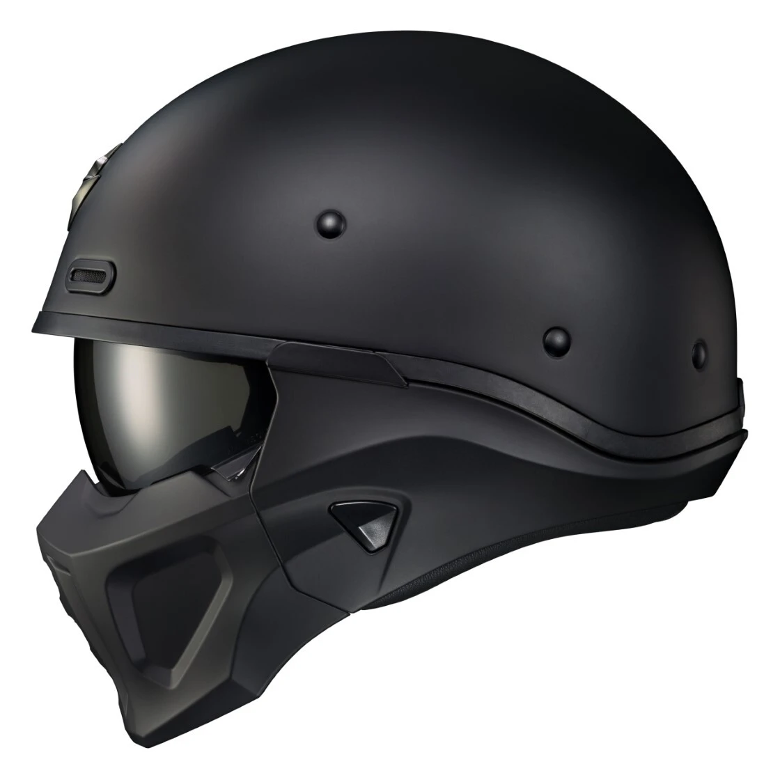 Versatility is the Covert X Helmet’s greatest hit. The unique design offers three different riding configurations: full-face, three-quarter and half-helmet modes. The molded polycarbonate face mask, rear comfort neck sleeve, ear covers and drop down visor (all included) can be added or removed to drastically adjust the Covert X’s look. A single helmet has never done so much. The legend continues.