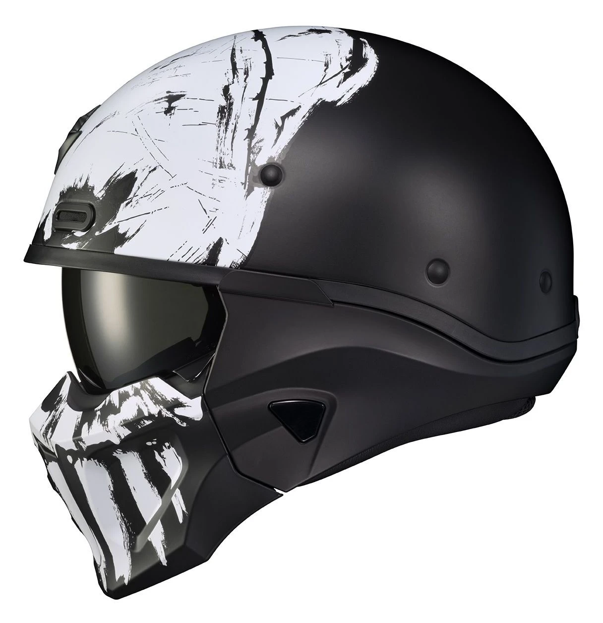 Versatility is the Covert X Helmet’s greatest hit. The unique design offers three different riding configurations: full-face, three-quarter and half-helmet modes. The molded polycarbonate face mask, rear comfort neck sleeve, ear covers and drop down visor (all included) can be added or removed to drastically adjust the Covert X’s look. A single helmet has never done so much. The legend continues.